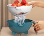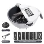 3.Upgrade Version:9 in 1 Vegetable Cutter , Multi-Function Vegetable Slicer with Drain Basket,Multi-functional Kitchen Veggie Fruit Shredder Grater Slicer.With 8 replaceable blades you can cut cheese, tomatoes, onions, cucumber and cabbage in different shapes, sizes and thicknesses.