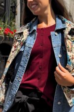 Front button closure adds refined style and versatile layering options.