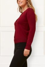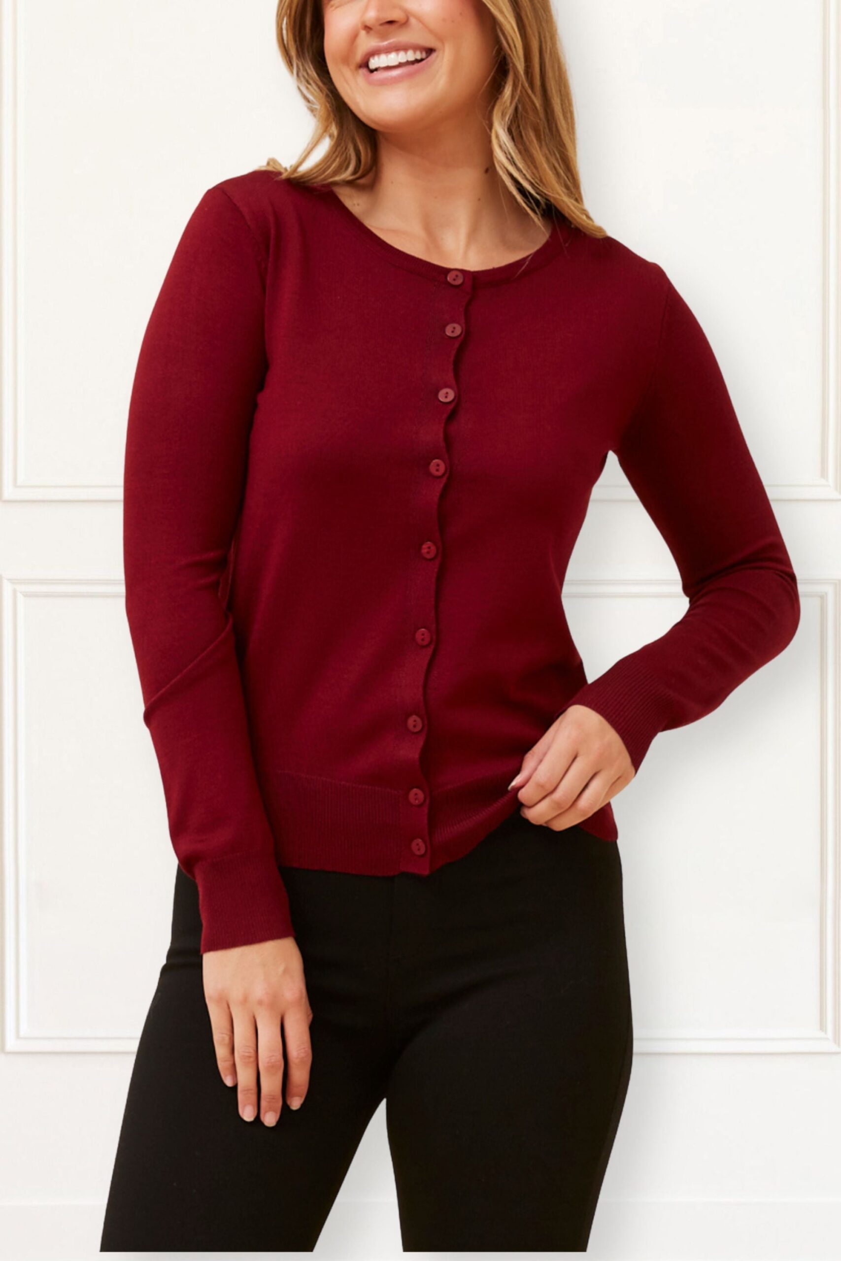 Crafted from a silky-soft knit blend of 50% viscose, 23% nylon, and 27% polyester, this lightweight cardigan provides a smooth, flattering drape and gentle stretch for easy layering. The round neckline and front button closure create a minimalist, polished silhouette that works beautifully for casual, office, or weekend outfits.