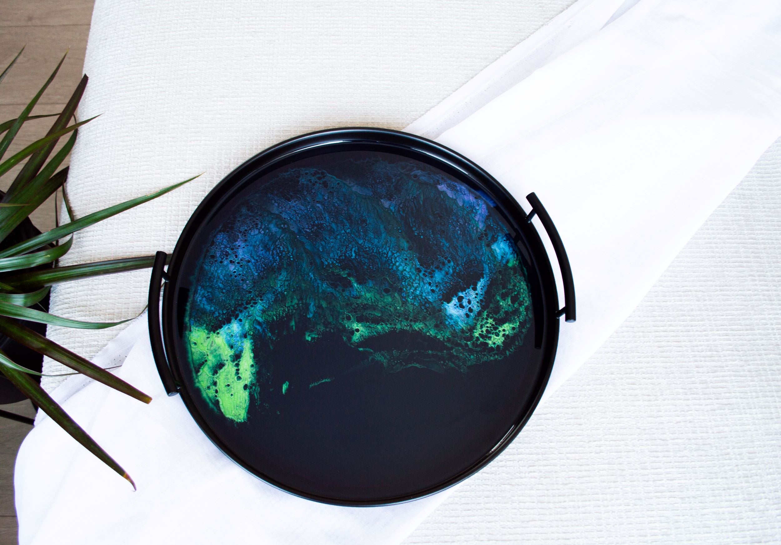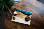 Elevate your entertaining experience with our stunning Northern Lights Charcuterie Board, Entertaining Glass set and Knife Set (each sold seperately) Inspired by the breathtaking hues of the aurora borealis, these exquisite pieces feature a mesmerizing blend of deep greens, blues, and purples created by hand from an eco-friendly resin.