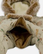 With car seat compatibility so it’s easy to buckle little ones in, our BABY LAYETTE winter suit in green animal print is waterproof, breathable, dirt-repellent, and designed for warmth in temperatures as low as -30°C (-22°F). A sherpa-lined hood, a velour-lined body, velour-lined booties, and a chin guard offer added warmth, while an adjustable inside waist makes it possible to get the perfect fit.