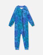 It’s essential to be comfortable when wearing a snowsuit, so we’ve designed this one-piece base layer in super soft and thick brushed jersey to keep little ones warm yet able to move freely. Our thermal underwear jumpsuit features long raglan sleeves, a round neckline, an asymmetrical zipper closure, and an allover blue gradient dinosaur print.