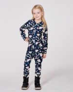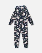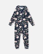 It’s essential to be comfortable when wearing a snowsuit, so we’ve designed this one-piece base layer in super soft and thick brushed jersey to keep little ones warm yet able to move freely. Our thermal underwear jumpsuit in navy flower print features long raglan sleeves, a round neckline, and an asymmetrical zipper closure.