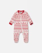 2par2 | Designed in Canada, Organic Cotton Baby One-Piece Pajama Red And White Fairisle