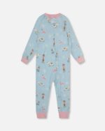 2par2 | Designed in Canada, Organic Cotton Interlock One-Piece Pajama Blue Dog Print