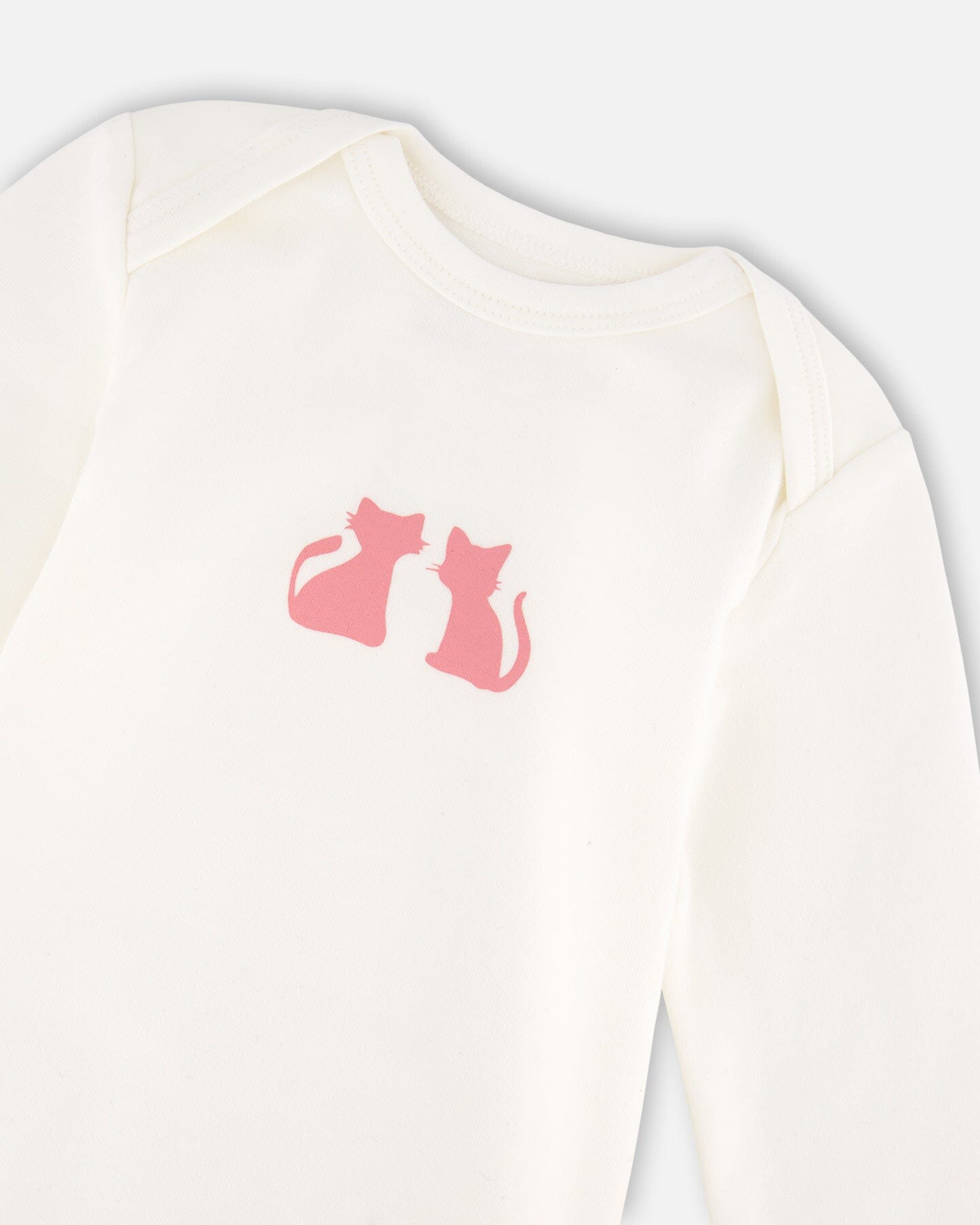 Soft, cozy, and perfect for everyday wear, our Organic Cotton Long Sleeve Romper Off-white is designed for all-day comfort. This onesie features long sleeves to provide warmth, while bottom snap closures and a wrap-over collar ensure easy dressing. Delicate cat details on the front add a sweet touch to this timeless wardrobe staple.