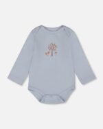 Cuddle your little one in our adorable Organic Cotton Onesie in Light Blue ! Made from super soft organic cotton, this bodysuit features a cute tree print on the chest that’s sure to make everyone smile. With long sleeves, a wrap-over collar, and easy bottom snaps for quick diaper changes, your little bundle of joy will be ready for playtime or naptime in no time. Too cute to handle!