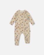 2par2 | Designed in Canada, Organic Cotton Zipped Romper Beige Tree Print