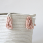 The peach tassel basket is one of our latest obsessions! Not only is it the perfect shade of cheery peach, but it is also the perfect addition to any room in your home. With endless possibilities, this basket can be used in so many ways. Store rolled up blankets, diapers, or even your little one’s toys. Hide the clutter without sacrificing style. Each basket features 6 hand-dyed tassels in peach.