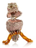 The Keren Kopal Owls trinket boxes exhibit elements of the Art Nouveau style, which emerged in the late 19th century. Art Nouveau was characterized by organic, naturalistic designs inspired by the natural world, including flora and fauna motifs. The intricate enamel work and crystal embellishments on these owl boxes evoke the whimsical and ornate aesthetics of Art Nouveau.