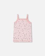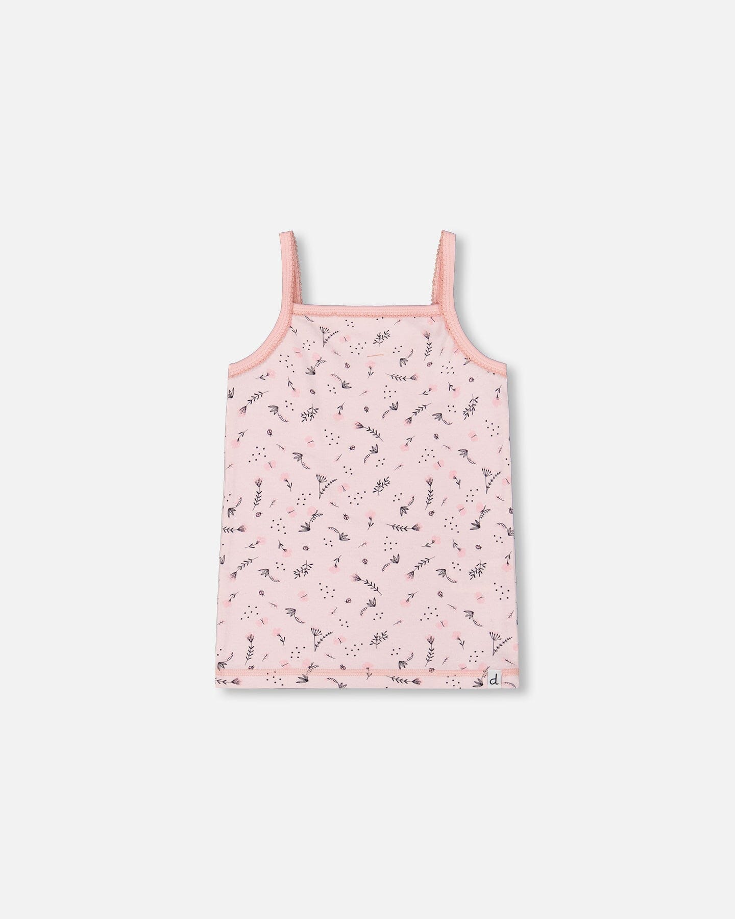 Our Printed Organic Cotton Tank Top Small Pink Flowers on Pale Pink Background is a darling addition to any little girl’s wardrobe. This soft cami features spaghetti straps with picot trim, a square neckline, an allover floral print, and solid binding and trim.
