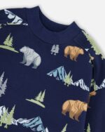 With an allover bear, tree, and mountain print, this fleece top is made for the boy who loves camping, fishing, and spending time in the woods. In ultra-soft cotton/poly fleece, this sweatshirt features a pullover silhouette with long sleeves, a crew neckline, and stretchy rib knit trim at the neck, cuffs, and hem.