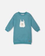 Our Quilted Tunic Dress Turquoise Blue is a soft and whimsical essential for relaxed winter looks. Made from quilted jersey in a cozy cotton-polyester blend, this long sleeve dress features an allover diamond pattern, ribbed cuffs, collar and hem, and an adorable llama applique on the chest. Its straight cut and comfortable feel make it an easy go-to for everyday wear.