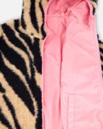 Reversing from polyurethane-coated oxford to animal print sherpa fabric, this mid-season outerwear offers a double dose of versatility. Detailed with a zip front closure, pockets on both sides, and an attached hood, the solid side of this reversible jacket is dirt-repellent and waterproof, making it perfect for wearing on chilly, wet days.