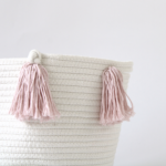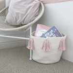The Rose Pink Pom basket is a beautiful dusty pink colour. It is the perfect addition to any room in your home. With endless possibilities, this basket can be used in so many ways. Use it for babies books, store rolled up blankets, or your little one’s toys. Hide the clutter without sacrificing style. Each basket features 12 hand-dyed poms in rose pink.