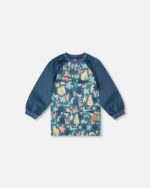 Make art class your most stylish moment of the day with our green cat print smock. In fabric made from recycled plastic bottles, this eco-friendly school apron features a long raglan sleeve silhouette with double front pockets, a round neckline, elasticated wrists, and a water-resistant finish..