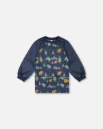 Make art class your most stylish moment of the day with our navy animal print smock. In fabric made from recycled plastic bottles, this eco-friendly school apron features a long raglan sleeve silhouette with double front pockets, a round neckline, elasticated wrists, and a water-resistant finish..