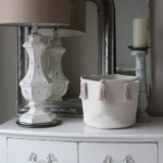SET OF TWO – The Blush Tassel basket is one of our best sellers for a good reason! Not only is it the perfect shade of blush pink, but it is also the perfect addition to any room in your home. With endless possibilities, this basket can be used in so many ways. Outfit a potted plant, store rolled up blankets, or – even your little one’s toys. Hide the clutter without sacrificing style. Each basket features 6 hand-dyed tassels in blush pink.