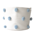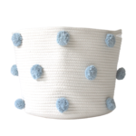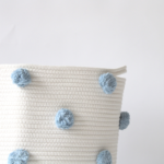 The Sky blue pom basket is a beautiful shade of bright blue. It is also the perfect addition to any room in your home. With endless possibilities, this basket can be used in so many ways. Use it for books, store rolled up blankets, or – even your little one’s toys. Hide the clutter without sacrificing style. Each basket features 18 hand-dyed poms in sky blue.