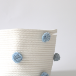 The Sky blue pom basket is a beautiful shade of bright blue. It is also the perfect addition to any room in your home. With endless possibilities, this basket can be used in so many ways. Use it for books, store rolled up blankets, or – even your little one’s toys. Hide the clutter without sacrificing style. Each basket features 12 hand-dyed poms in sky blue.