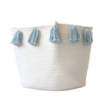 The Sky blue tassel basket is a beautiful shade of bright blue. It is also the perfect addition to any room in your home. With endless possibilities, this basket can be used in so many ways. Use it for books, store rolled up blankets, or – even your little one’s toys. Hide the clutter without sacrificing style. Each basket features 10 hand-dyed tassels in sky blue.