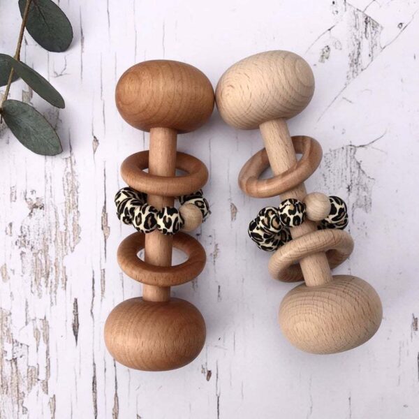 Baby Wooden Rattles, Raw Wooden Toys, Silicone Beads Color Enlightenment Education, Chewable Toys