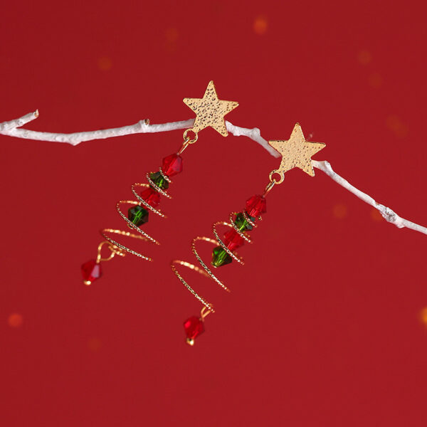 Artificial Rhinestone Star Spiral Christmas Tree Earrings | Free Shipping