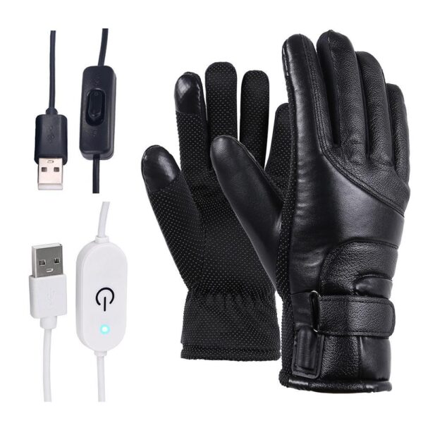 Electric Heating Thickened Leather Motorcycle Riding Gloves
