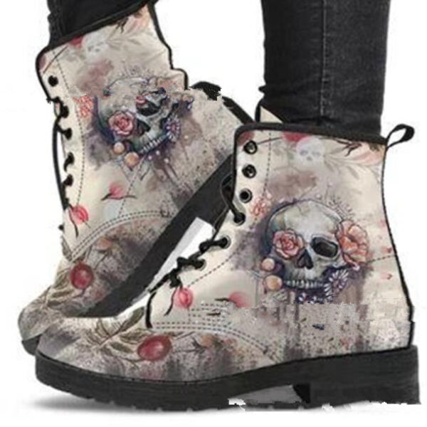 Boots Autumn And Winter Boots Skull And Flower Print Ankle Boots Women’s Plus Size