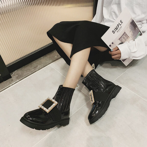 Autumn and Winter Martin Boots RV Rhinestone Square Buckle Boots