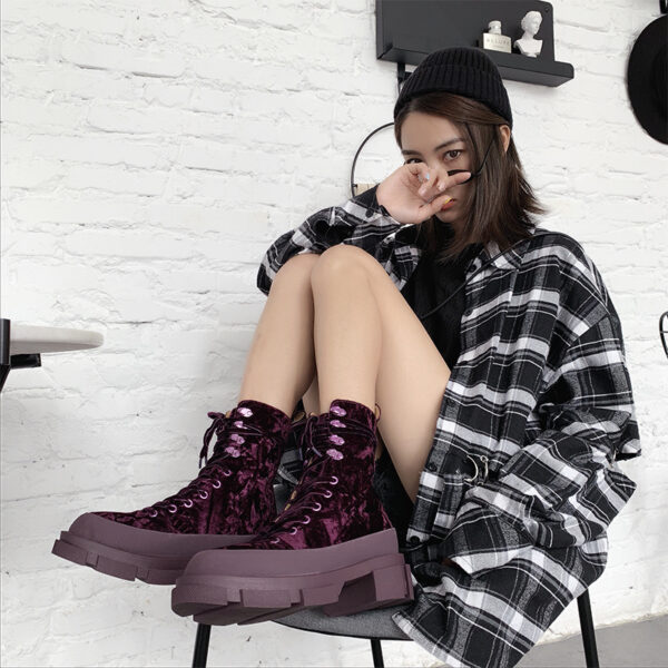 Women Ankle Boots Solid Color Chunky Boots Autumn Winter Platform Shoes