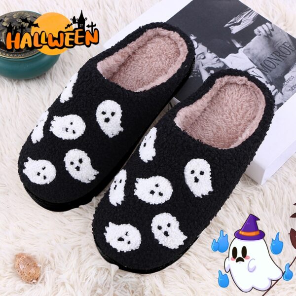 Halloween Funny Spider Ghost Scary Flat Indoor House Shoes For Women Men Soft Plush Cozy Horror Halloween Gifts