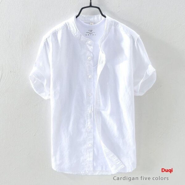 Stand Collar T-shirt Linen Short Sleeve Shirt Men