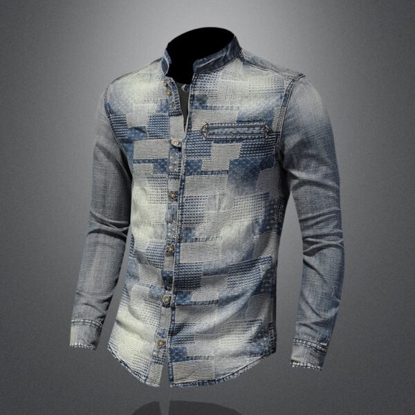 Retro Color Personality Patch Denim Shirt Punk Shirt Men