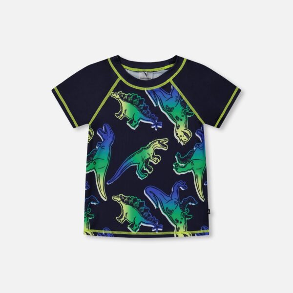 2par2 | Designed in Canada, Short Sleeve Rashguard Blue And Green Dino On Navy