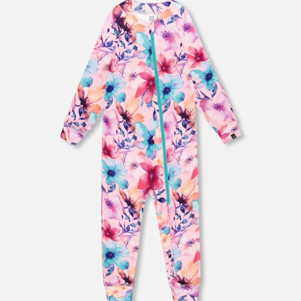 2par2 | Designed in Canada, One-Piece Thermal Underwear Pink Watercolor Flower Print