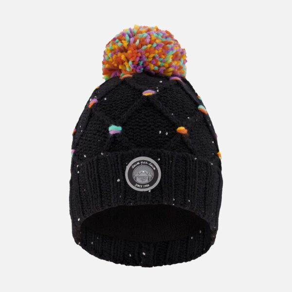2par2 | Designed in Canada, Lined Knit Pompom Hat Black And Multicolor With Little Sequins