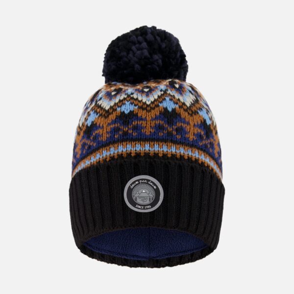 2par2 | Designed in Canada, Lined Peruvian Knit Pompom Hat Black, Blue And Brown