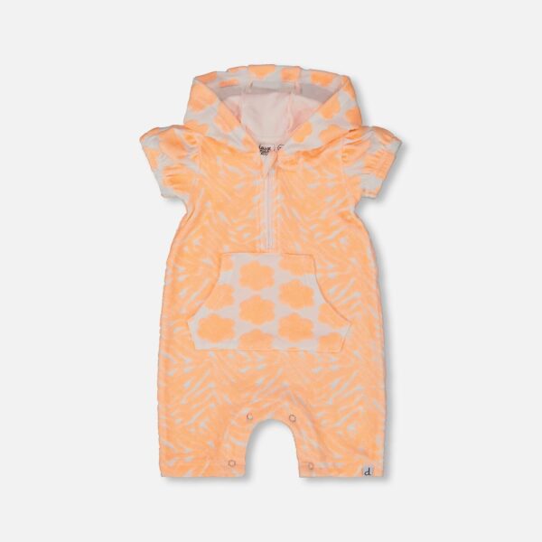2par2 | Designed in Canada, Printed Terry Romper With Hood Vibrant Orange And White