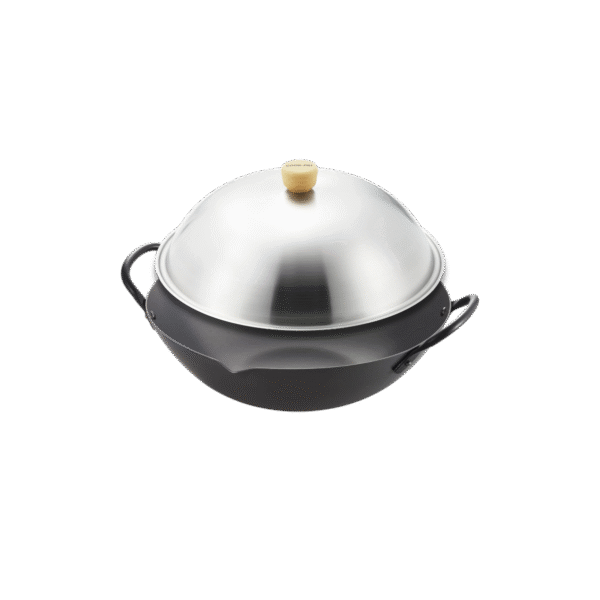 Yoshikawa 36cm Carbon Steel Wok with Stainless Steel Lid – Made in Japan