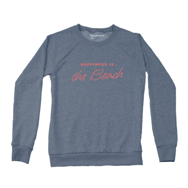 Women’s Beach Crew Sweatshirt, Heather Navy | Happiness Is Inc, Made In Canada