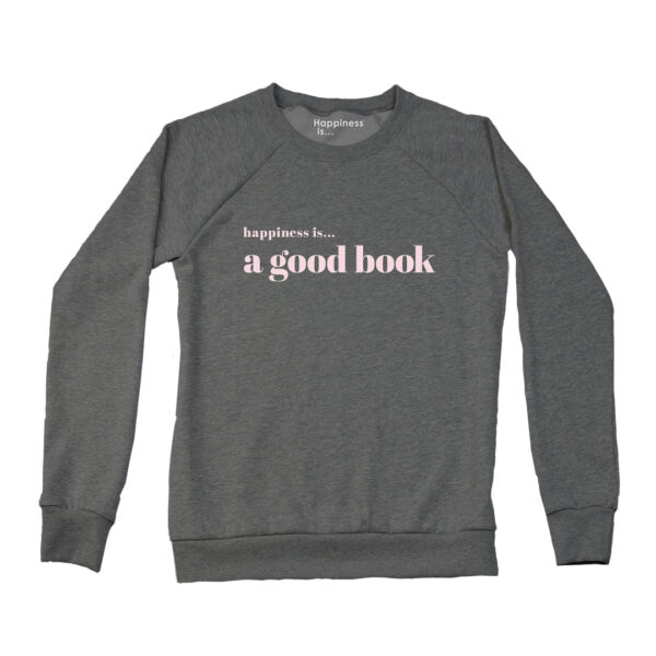 Women’s Good Book Crew Sweatshirt, Charcoal | Happiness Is Inc, Made In Canada
