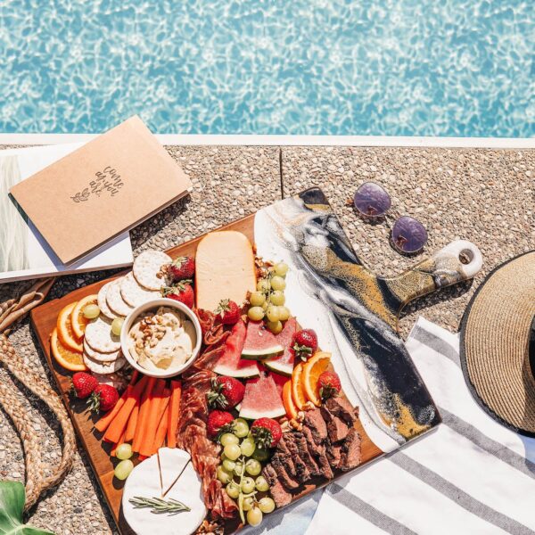 Resin-Accented Surfboard Shaped Charcuterie Boards | Lynn & Liana Designs, Made In Canada