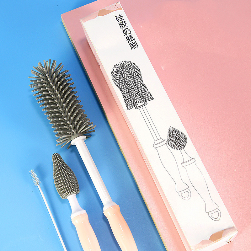 Straight Handle Silicone Baby Bottle Cleaning Brush Information: