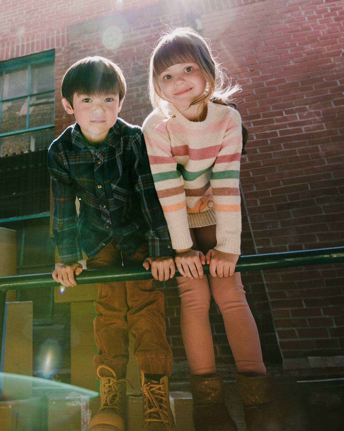 Soft and stretchy with a ribbed texture, these versatile pants are an absolute must-have for the upcoming season. With an easy pull-on fit, a comfortable elastic waistband, and a small logo label at the hem, our ribbed leggings can be teamed with a matching top, layered under a skirt or dress, or paired with any of her favorite tees, hoodies, and overshirts!