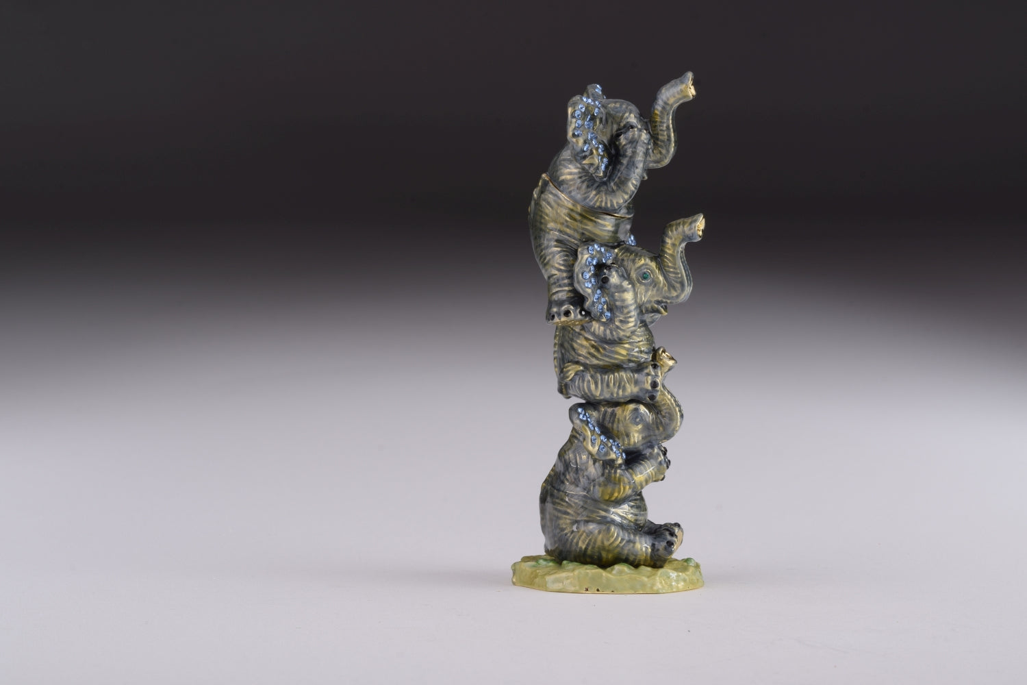 Elephants have been a significant subject in art across various cultures and time periods. Their majestic presence and symbolic meanings have inspired artists to depict them in numerous forms, from ancient carvings and paintings to modern sculptures and decorative items like those in the Keren Kopal collection. The intricate designs and luxurious materials used in these trinket boxes reflect the high regard and admiration for elephants in the art world.