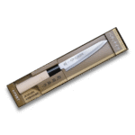 Discover the precision and versatility of the Petty Knife from Tsubazo, an essential companion for every culinary enthusiast. Meticulously crafted with a stainless steel blade, this Petty Knife excels in intricate tasks such as peeling, slicing, and intricate detail work with effortless precision. Its compact size and razor-sharp edge make it ideal for delicate cuts and fine garnishes, enhancing the presentation of your culinary creations. The ergonomic wood handle provides a comfortable grip, ensuring precise control and maneuverability in every task. Elevate your culinary skills with the Tsubazo Petty Knife and experience the art of precision cooking like never before
