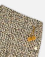 Elegant and comfy, our Tweed Flare Pants Beige and Black are a timeless favorite for fall. These flared trousers are crafted in a stretch jacquard knit with a lurex thread for a subtle shine, and they include front and back pockets plus playful little pompoms at the waistband. Ideal for pairing with any top or sweater from our “Teddy Bears Are Ours” collection for an effortlessly chic look.