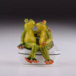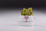 The frog trinket boxes embody the essence of art nouveau, a style that emerged in the late 19th century and celebrated organic forms, flowing lines, and a harmonious blend of nature and art. Keren Kopal’s creations capture this aesthetic with their intricate enamel work, delicately painted details and the incorporation of Austrian and Swarovski crystals that mimic the iridescent quality of a frog’s skin.