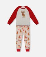 2par2 | Designed in Canada, Boy Two-Piece Organic Cotton Pajama Set Beige Reindeer Print